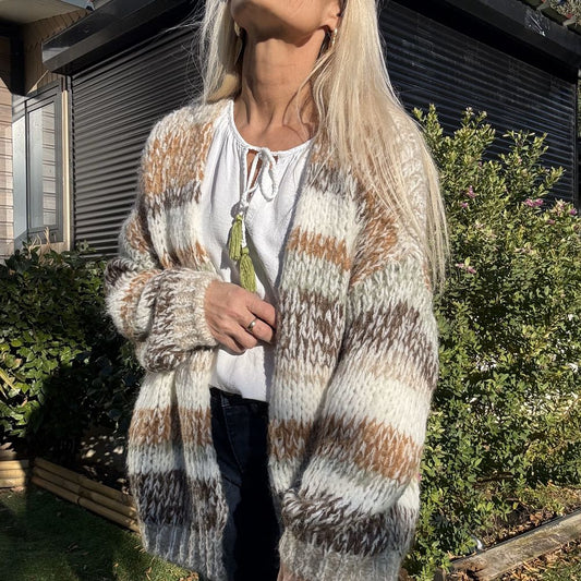 Gilet Grosse Maille à Rayures en Laine et Alpaga Sans Bouton – Esprit Bohème