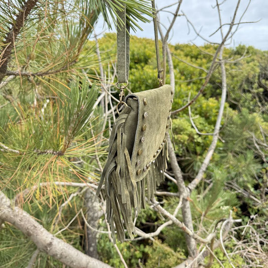 Sac Bandoulière en Cuir Santa Fé – Clous Dorés & Franges Bohème Rock